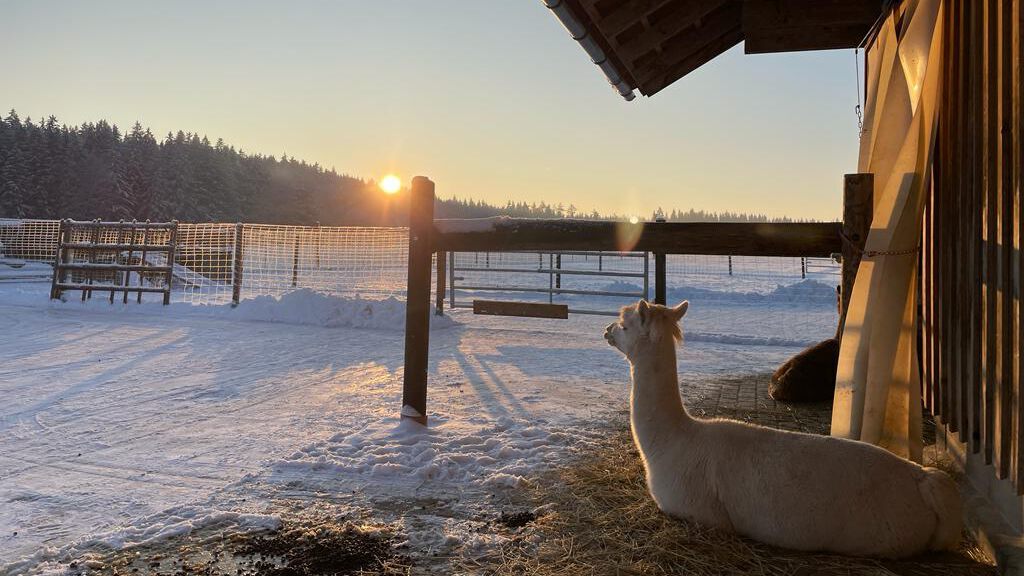 Ein Besuch am Weidezaun an der Straße ohne vorherige Absprache/ Terminvereinbarung mit uns kann für Sie bedeuten, dass alle Tiere auf einer Wanderung sind und Sie kein Tier antreffen. Wenn alle Tiere im Stall sind, sind sie von der Straße aus auch nicht sichtbar. Deswegen empfehlen wir, sich ein zu Ihnen passendes Angebot auszusuchen und hierfür einen Termin mit uns zu vereinbaren. Dann ist das Kennenlernen unserer Alpakas gesichert.