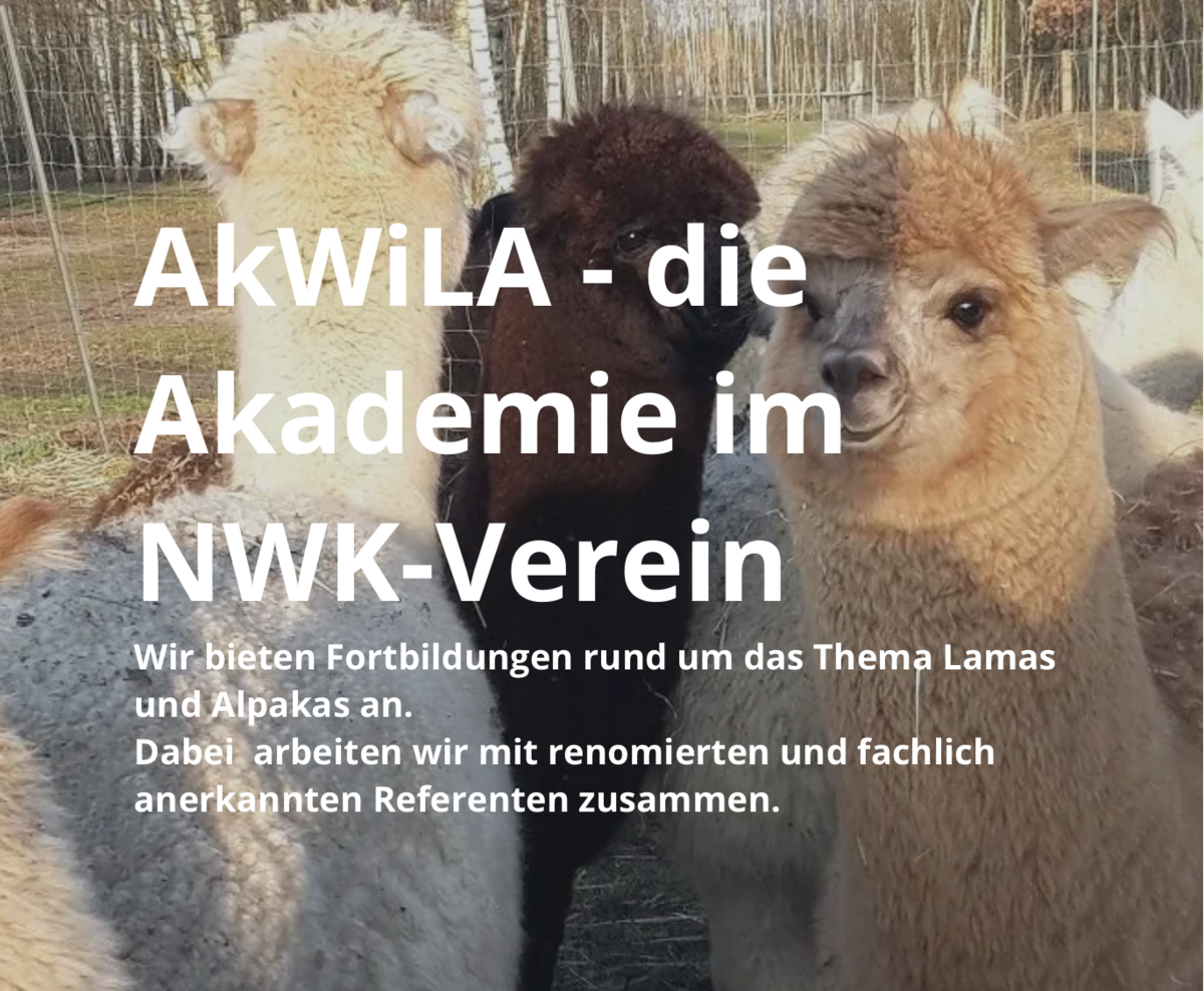 Stornierungsbedingungen: nur per Mail an alpaka@remove-this.alpakaleben.de oder per Post. Bis Eingang bei uns 30 Tage vor Seminarbeginn fällt eine Bearbeitungspauschale von 30 EUR an. Danach fallen 50% der Teilnehmergebühr an, ab 2 Wochen vorher 100%. Die Stornokosten entfallen, wenn ein qualifizierter Ersatzteilnehmer gestellt wird.
