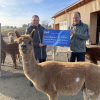 Am 12.12.25 kam Herr Wieder, Werksleiter der SWF Aitrach, zur Übergabe des Wunsch-Erfüller-Schecks auf unseren Hof und freute sich, die Alpakas kennen zu lernen und von unseren Projekten zu hören, die er im Namen der SWF gerne unterstützt.